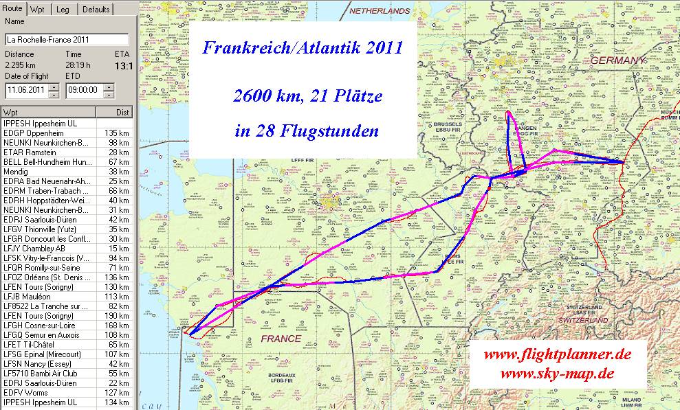 Die beeindruckenden Erinnerungen kann diese Seite nur andeuten. Danke natürlich an die wieder sehr hilfsbereiten Franzosen, die uns trotz mancher Sprachschwierigkeiten immer mit Unterstellmöglichkeiten weiterhalfen. Viel Informationen kann man sich in der frei verfügbaren französischen AIP an Land ziehen. UL spezifische Details findet man daneben in der nav2000 Nachfolge von navigeo (incl. Link zur AIP des ausgewählten Flugplatzes). Denn anders als in Italien sind ULs auf den französischen Plätzen mit Kennung voll integriert, zum Teil sogar mit eigener Platzrunde (Trike Symbol in der AIP vorhanden). Damit ist stressfreies Fliegen (Landen) in Frankreich angesagt. Einzig bei der Spritversorgung ist ein tragbarer Tank von Vorteil, Mogas oder Autosuper ist nicht sehr verbreitet, bzw. man kommt nicht so einfach dran (werktags). Daneben ist in der AIP auch verzeichnet, wer für das jeweilige Sperrgebiet (im Osten recht Flächendeckend) zuständig ist. Flugpläne werden nicht im Flug geschlossen, können aber recht unkompliziert über die landesweite Nummer 0033-810437837 aufgegeben/geschlossen werden, sollte einmal keiner am Platz sein. Daneben sind die Jeppesenkarten mit französischen Anflugblättern und UL Datenbank im Flightplanner und damit auch in Sky-Map vorhanden. Als Backup habe ich mein neues MGL Anzeigeinstrument Extreme incl. GPS mit den notwendigen Platzdaten gefüttert. |