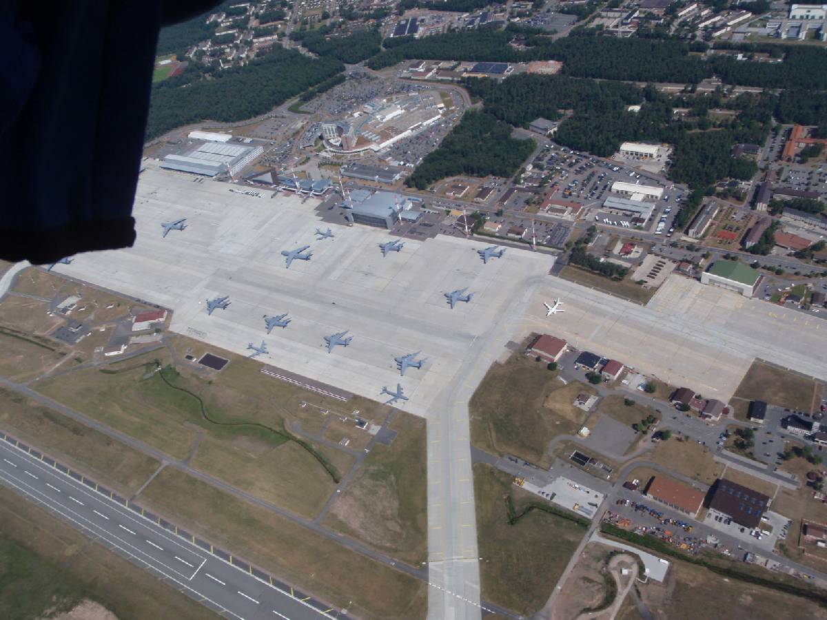 Etwas niedrige Bewölkung dann wie angekündigt über dem westlichten Teil des Thüringer Waldes, aber schon bei Coburg war der Himmel wieder aufgelockert. Zur Einstimmung auf den internationalen Funkverkehr ein Überflug mit Freigabe durch die Kontrollzone von Ramstein.