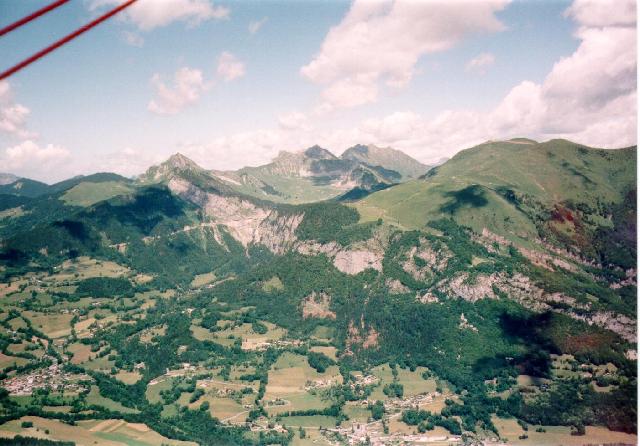 Als die freundliche Dame vom Tower zurückkehrte, war sie doch etwas erstaunt über die UL-Flotte die sich da breitgemacht hat. Da das Restaurant zu war, versorgte sie uns bei dem doch recht angenehm warmem Temperaturen mit den notwendigen Erfrischungen - Cola, Wasser, Saft etc. Eigentlich hat La Veze gar keine UL-Zulassung, aber wenn man sich vorher anmeldet ist das auch kein Hinderungsgrund. Da gerade die NATO-Übung Clean Hunter am laufen war, versorgte sie uns, neben dem aktuellen Wetter, mit ausreichend Kopien zum franz. Anteil dieser Übung. Mit der AIP und dem Jeppesenführer konnten wir die nächste Etappe abstecken. Besonders hilfreich war es, daß sie unsere ins Auge gefaßten Zielflugplätze telefonisch abfragen konnte. So sollte es via Oyonnax nach Bellegard westlich von Genf gehen. Wir setzten unsere Begleitmannschaft, welche schon auf dem Weg nach Besancon war, davon in Kenntnis, daß wir noch ein Stück dran hängen wollten. Zum Fliegen nicht weiter schlimm, aber das Fahren erwies sich mit dem Anhänger trotz Autobahn als recht zäh. Wir folgten also nach dem Start in Besancon dem Tal der Ain, die sich in mehreren Staustufen nach Süden ein tiefes Tal gegraben hat.