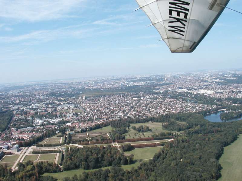 Schwimmbad, Cafe und herrschaftliche Unterkunft. So ging es weiter in den Osten von Paris wieder unter der Kontrollzone Luftraum A in max. 1500 ft bis zur Marne. Das Zentrum war zwar besser als zu Pfingsten zu erkennen, aber auf den mitgebrachten Fotos kommt das beeindruckende Panorama einfach nicht rüber. In Chateau Thierry mussten wieder alle Hilfsmittel herhalten um eine Verständigung mit einem dortigen Trikepiloten zu ermöglichen, Englisch ist selbst auf Flugplätzen manchmal wenig verbreitet.