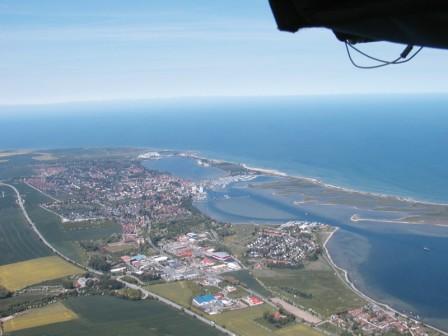 Weserbergland. Dienstag war der Brocken im Harz angesagt, doch der Flugplatz lag im Nebel. Hildesheim die erste Station meldete Wolken in Sicht, aber dort sonnig, also abwarten und gemütlich die Sachen verpacken und etwas zu schrauben gibt es immer. Zu Mittag ging es "dann so" und ein interessanter Blick zurück eröffnet sich um Hildesheim mit Wolkenfetzen und einer Dunstschicht über dem Bergland. Da der Harz noch etwas ungewiss war, stand ein Stadtbummel auf dem Programm. Später sorgten dunkle Gewitterwolken etwas für Unruhe, aber ein exaktes Wetterbriefing verriet nur lokale Behinderungen. So konnte es am Nachmittag zwischen zwei Regengebieten hindurch trockenen Fußes Richtung Lüneburg weiter gehen. Auch dort war Unterkunft am Platz mit Frühstück sichergestellt. Dazu wurde am Abend der Grill aus dem Anhänger des Begleitfahrzeuges angeschmissen. Die Damen stellten ein deftiges Grillmenü zusammen. Die Flieger konnten in der Segelflughalle bequem Platz finden und das Tanken war ebenso unproblematisch dank Tankstelle vor Ort. Am Mittwoch ging es dann nach Fehmarn und wie uns der Flugleiter bestätigte an einem der wenigen idealen Flugbedingungen im Jahr mit herrlicher Fernsicht.