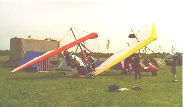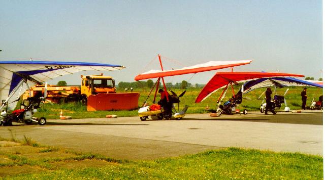 Natürlich war die Frage des Wetters der (fast) alles bestimmende Faktor. Mit unseren Trikes wollten wir natürlich nicht unbedingt im trüben Regeneinerlei fliegen und nach Möglichkeit die Geräte bei einer Schlechtwetterfront geschützt unterbringen. Im nachhinein betrachtet hatten wir dazu nur einmal wirklich Anlaß, als eine angekündigte Gewitterfront über uns hinweg zog. Aber hinterher ist man bekanntlich immer viel schlauer.