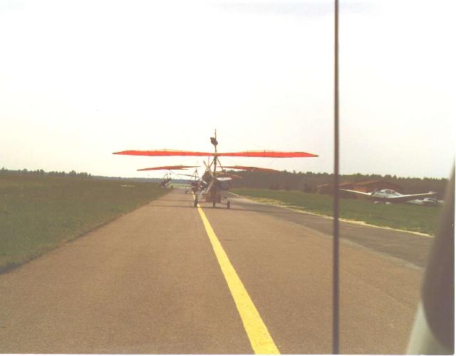 Halle-Oppin wurde weiter verfolgt – erkundigt euch doch mal in Brandis. Gesagt getan, wenn auch mit etwas gemischten Gefühlen, den in meiner Flugplatzliste war Brandis bei Leipzig erst vor kurzem als geschlossen rausgefallen und keine Infos zu UL-Betrieb. Aber siehe da die prophezeiten Hallenplätze waren vorhanden und so konnten wir unbeschwert gegen Süden fliegen. Die erste Strecke bis Stendal war trotz auffrischendem Gegenwind noch recht gut zu bewältigen. Stendal, einer der weiter in Betrieb befindlichen ewig langen Ex-Militärplätze, die man einfach mal angeflogen haben muß. Die Sonne stach schon recht giftig zur Erde und man war froh in dem netten Kaffee einen Schattenplatz zu finden. Ein Start auf dem Taxiway