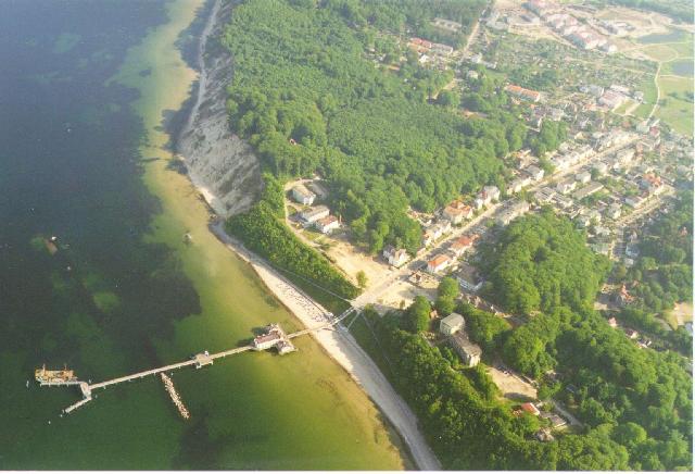 Bestes Flugwetter für einige Schnappschüße von Fliegern und Küste waren angesagt. Es folgten die alte Hafenstadt Sassnitz mit dem neuen Verladebahnhof einige Kilometer westlich. Und dann der unvollendete kilometerlange Bau, die Prora, ein im dritten Reich als Erholungsort geplantes monströses Bauwerk. An Binz vorbei war der letzte östlichste Punkt das Seebad Sellin als Wendepunkt Richtung Schmoldow angesagt. Beim Rückflug an der Südküste Rügens ging es nochmals mit einem kleinen Hüpfer übers Meer zum Festland. Der etwas holprige Grasplatz in Schmoldow war zum Nachtanken vorgesehen, jedoch ein recht frischer Wind trieb uns nachher zügig nach Waren zurück.