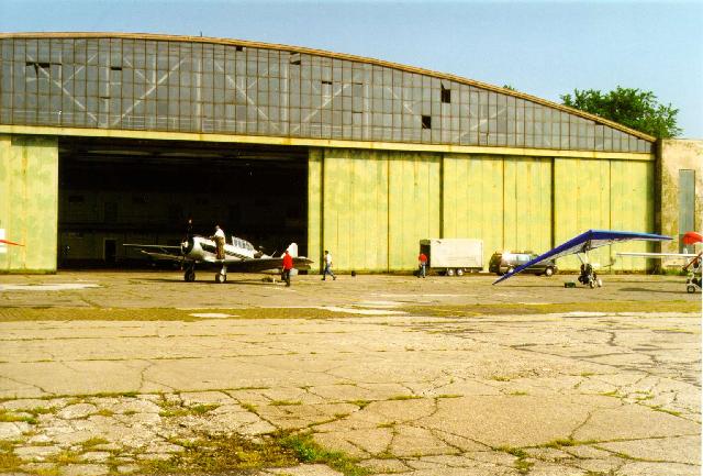 In Brandis angekommen dürfen wir doch einmal die Weite eines riesigen Militärareals kennen und rollen lernen. Aber der Wind ist fast eingeschlafen und so macht das weniger Probleme. Wir werden zu einer riesigen ehemaligen Jet-Halle gelotst. Und als wir vor bzw. in ihr stehen, meint einer doch glatt: Hier könnte man mit PPG wirklich Trocken-Training veranstalten und dazu müßte man die Halle noch nicht mal ausräumen. Die Bodencrew hatte inzwischen auch schon Unterkünfte der besonderen Preiskategorie organisiert, nachdem keiner bei dem angekündigten Gewitter eine Nacht sein Zelt aufschlagen wollte. Wir waren doch etwas überrascht was hier noch als Privatzimmer angeboten worden ist. Aber wir waren allesamt so müde von dem turbulenten Flug und den vielen Eindrücken, daß uns dieser Umstand, zumal für eine Nacht kaum noch störte.