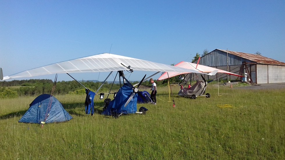 hatten. Der keine UL Platz hatte es aber bei dem ungewöhnlichen Nordwind im Nachhinein leider in sich. Eigentlich optimal in Ost-West Richtung ausgelegt, war der Querwind doch etwas unberechenbar durch die seitlichen Hindernisse. Der kleine Ort befand sich gerade im Umbruch zur Zukunft, die Glasfaserkabel wurden gerade eingebuddelt. Aber sonst gab es alles neben Supermarkt (am Sonntag bis Mittag offen) Bäckerei, Pup und Restaurant in Fußwegnähe. Durch den Emailkontakt war auch jemand zum Spritholen mit Kanister parat. Wäre am großen Platz von Nevers etwas näher, da direkt neben der Piste (Supermarkt). Am nächsten Tag konnten wir