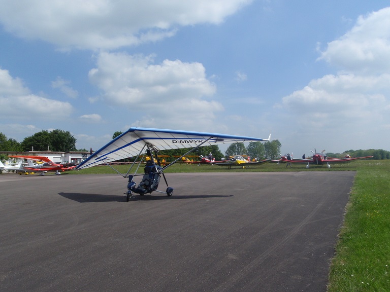 Fliegershop/Flugschule und großer Rotaxwerkstatt. Aber es ging gleich weiter