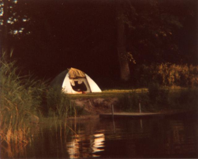 Ein Zeltplatz am See war nicht zu finden, da das Ufer entweder mit Ferienhäuschen zugebaut oder von Schilf bewachsen war. So führte unser Weg einige Kilometer ins Hinterland an einen kleinen See.