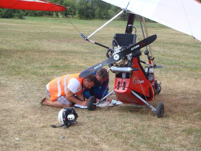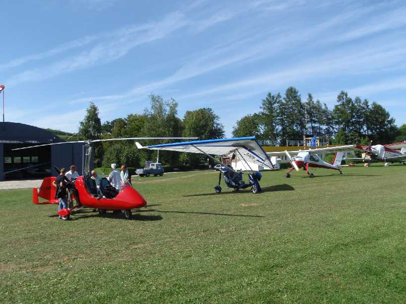 Zu unserem ersten Zwischenstopp wäre aber Funk auch wirklich nicht notwendig, es sollte ein kleiner UL Platz an der tschechischen Grenze sein. Alles lief wunderbar, der bestellte Sprit war vor Ort, ein paar Erinnerungsfotos und nach der Besichtigung der Halle ging es weiter quer durch die Tschechische Republik nach Vysoke Myto, einem großen Segelflugzentrum.