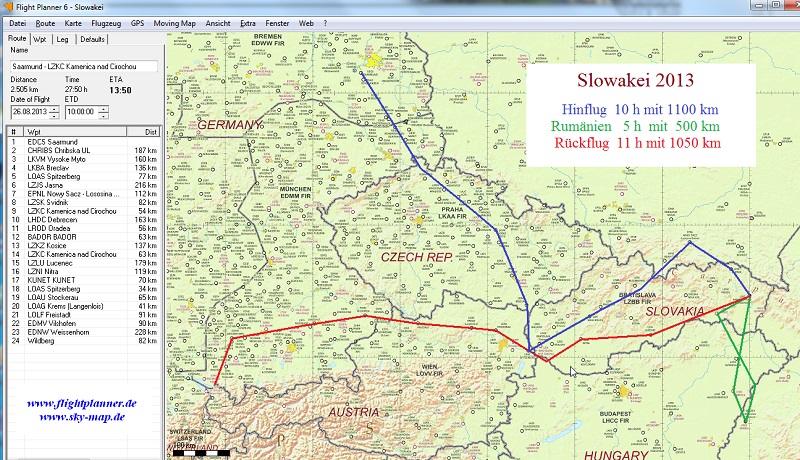 Rückflug bis Spitzerberg bei Wien schon vorbereitet.