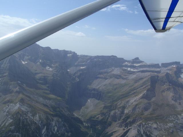 Sonntag (1. Tag Rückreise): Montag (2. Tag): Ich hatte ihn vor einem Jahr am Boden genießen können und war stark beeindruckt von der Mächtigkeit der Felsenwände fast 360 Grad um einen herum. Mit nur wenigen Drehzahlanstiegen wurde die Höhe stetig über die Aufwinde erreicht und am Schluss war man fast 11.000ft hoch und der Felsenkessel lag gerade recht im Sonnenschein vor einem. Nicht ganz so imposant wie am Boden konnte man von der Höhe die Ausmaße erahnen. Auf jeden Fall ein sehenswertes Objekt in den Pyrenäen und nicht weit von dem idyllischen Platz Castejon de Sos entfernt, welcher beim Hinweg für eine Zwischenstation genutzt wurde. Diesmal jedoch ging es über die wesentlich grüneren Hänge in den französischen Teil der Berge. Einige Mountain Airfields waren auf meiner Karte vermerkt, aber ohne genaue Kenntnis der Lage waren die nicht nutzbar. Recht zügig waren die Berge hinter einem gelassen und es ging an einen Stausee mit dem kleinen Platz