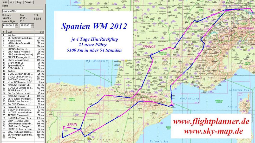 Menge und auch um Madrid sind UL-Plätze nicht rar. Vorbereitung: Freitag Abend: Aufbau des Trikes am Wildberg, Tanken, Flugplanung nach Frankreich erledigen. Samstag (1. Tag Hinreise):