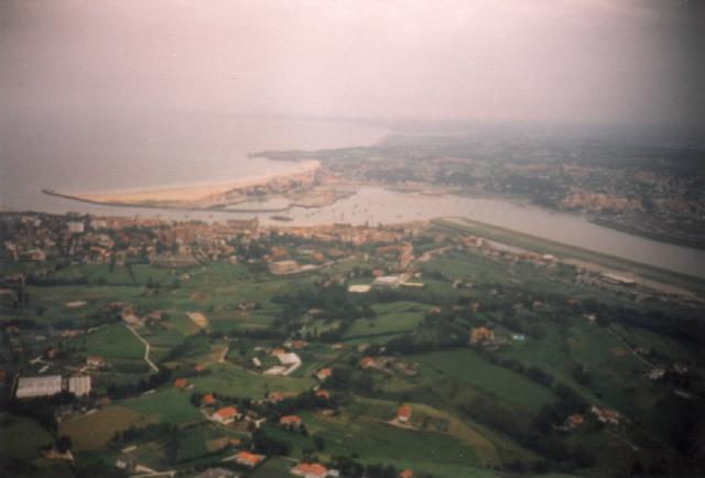 Der Wind war schwach, so daß ich genügend Reserven hatte eine andere Flugroute zu wählen, falls die Sicht schlechter werden würde. So hervorragend gebrieft startete ich erstmal Richtung Norden und einige Sonnenlöcher verhießen noch Gutes. Die Sicht unterhalb der Wolken war gut und so konnte ich den Umweg durch die Kontrollzone von Vitoria abkürzen. Aber wieder auf der Schlechtwetterstrecke Richtung Küste vor dem letzten Pass wurde es etwas eng. Die Bergspitzen waren schon in die Wolkendecke getaucht und vereinzelte Wolkenfetzen erforderten erhöhte Aufmerksamkeit. Ich tastete mich vorsichtig an den Pass heran, immer mit der sicheren Möglichkeit wieder Umkehren zu können. Nachdem man das Tal hinter dem Pass einsehen konnte und ausreichende Sicherheitshöhe zur Verfügung stand, überquerte ich den Pass. Es öffnete sich vor mir ein enges, aber malerisches Tal, mit saftig grünen Hängen, fast so wie in den Alpen. Die Atlantikküste begrüßte mich mit etwas feuchterem Klima, das schmälerte das faszinierende Panorama jedoch nur unwesentlich.
